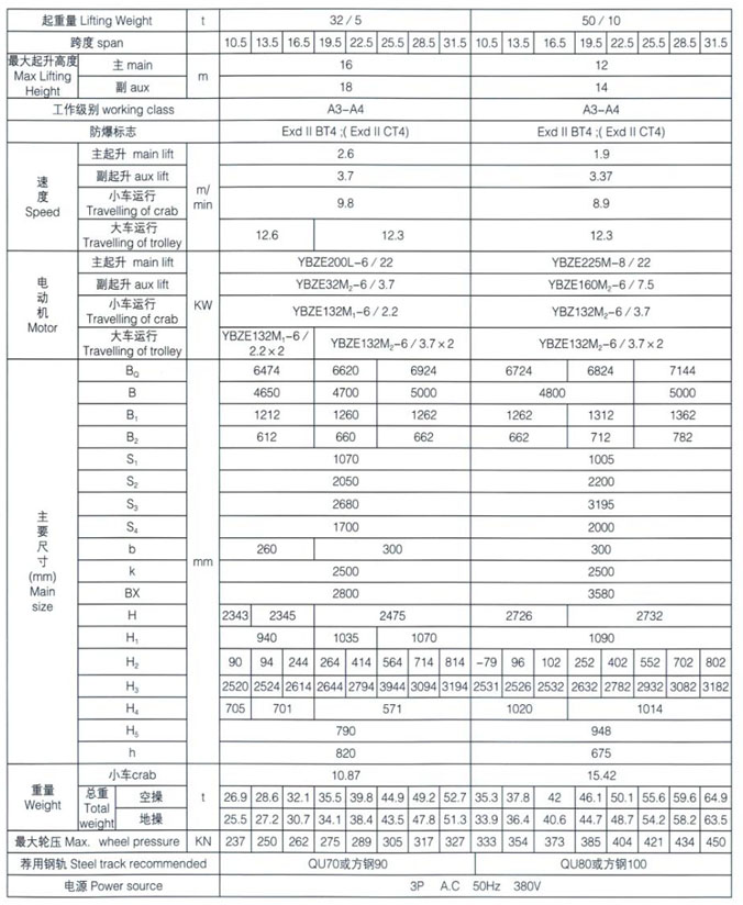 QB型5~50/10t防爆橋式起重機